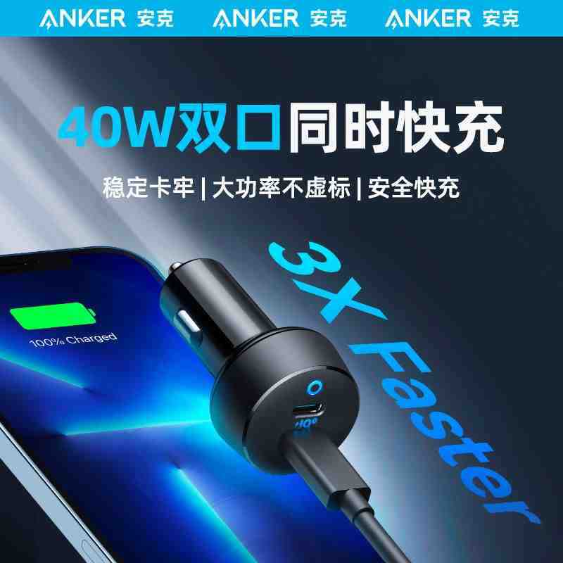ANKER安克40w車充双C口車載充電器PD快充適用携帯電話タブレットノートA2724