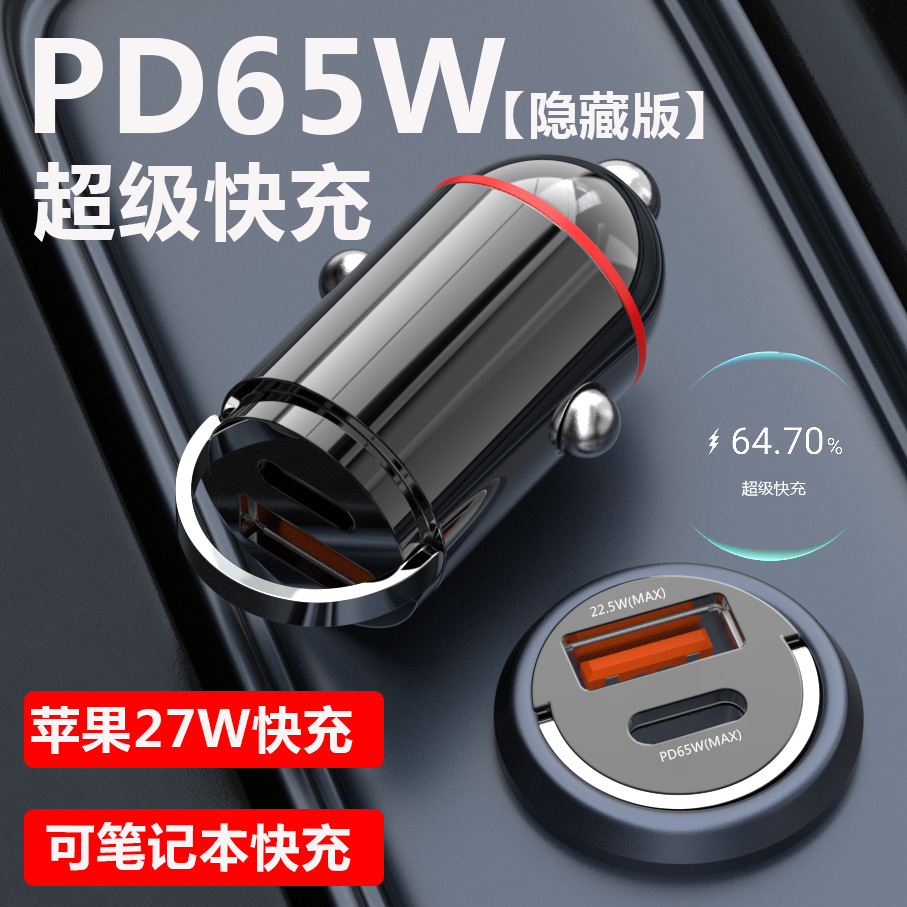 新型車充電pd3.0急速充電多機能シガレットミニプルリング隠し式65wフラッシュ充電車載充電器