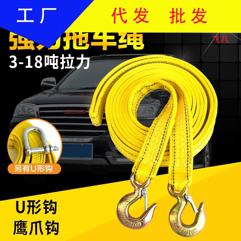 自動車牽引ロープ4メートル5トン3トン二重に厚くなったオフロードトレーラーの結束バンド引き締め器牽引ロープ