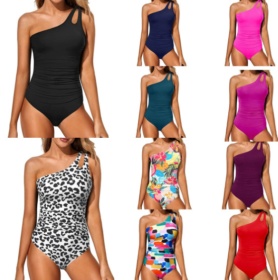 2024新型欧米のワンピース水着女性アマゾンのセクシーなシングル肩の透かし彫りの修身はやせた一体式の水着を見せます。
