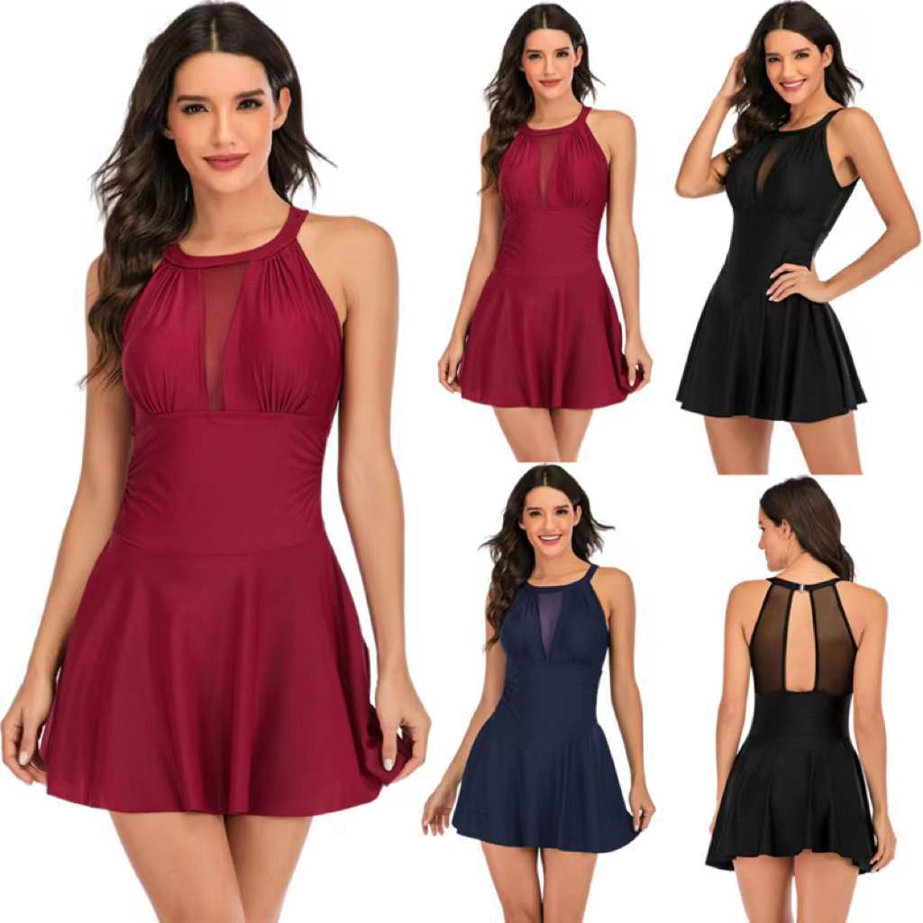ヨーロッパとアメリカの新しいワンピース水着、女性のセクシーなレースメッシュ無地お腹カバー、女性用の控えめなワンピーススカートスタイルの大きいサイズの水着