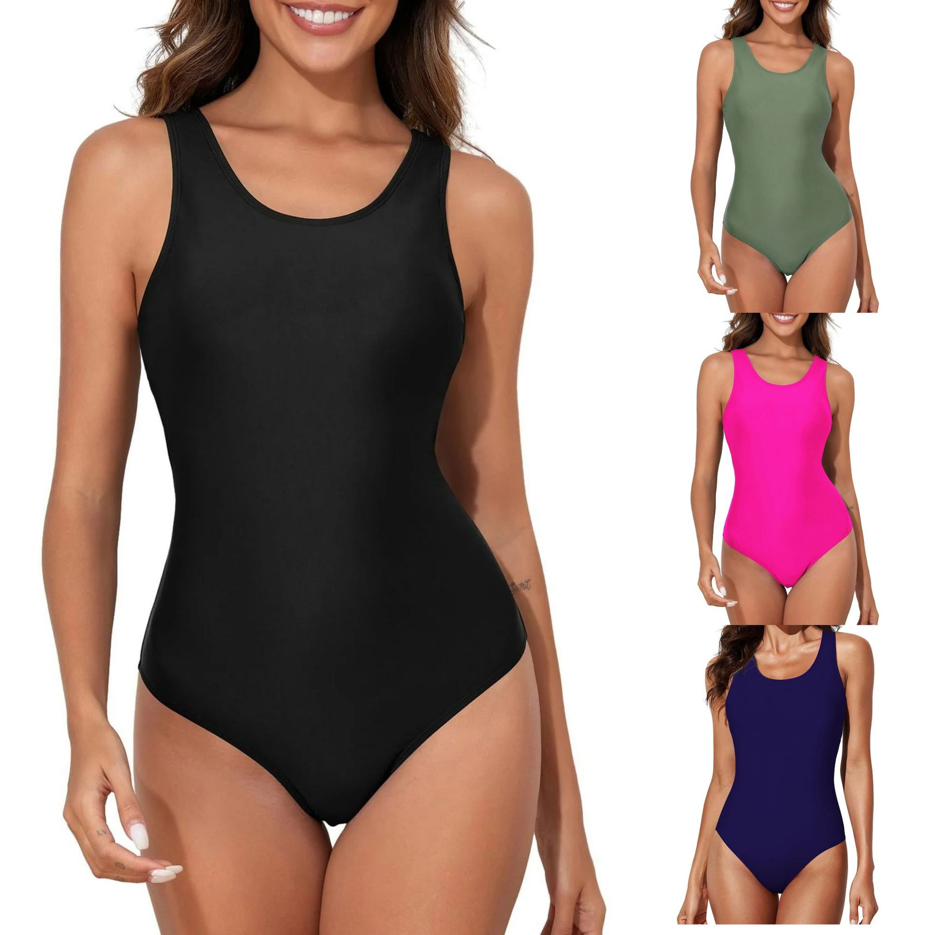 Amazonクロスボーダー新作ノースリーブジッパーワンピースブリーフタイトソリッドカラーアスレチックサーフィンスーツヨーロッパとアメリカの女性用水着