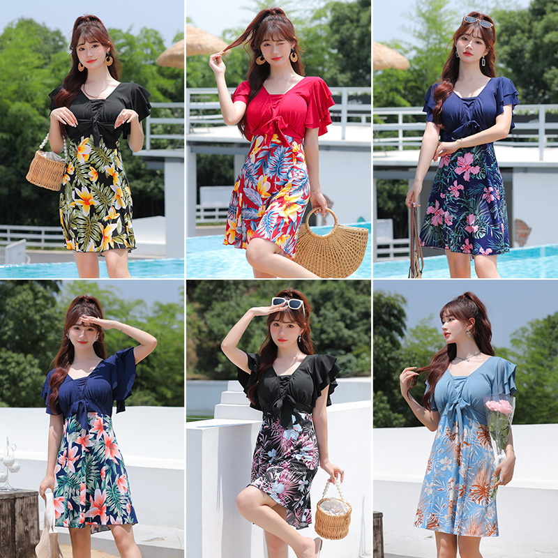水着女性温泉高級感ワンピース水着肩砕花スカート式遮肉保守純欲水着メーカー