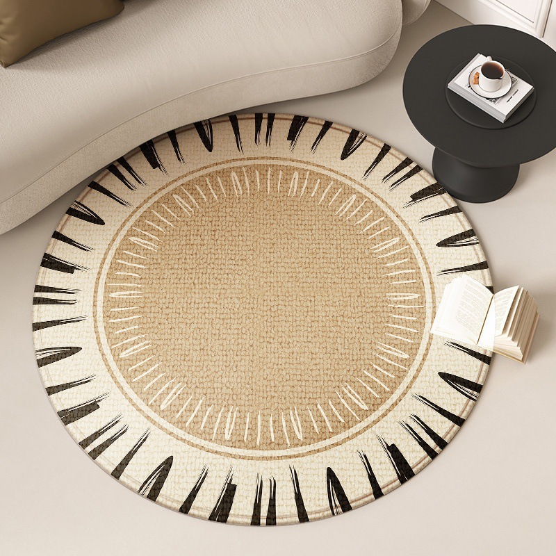 軽奢なフレンチスタイルのクリーム色の丸いカーペット、寝室用高級プリントの豪華なフリース、リビングルームのコーヒーテーブル用カーペット、高級ベビーフロアマット