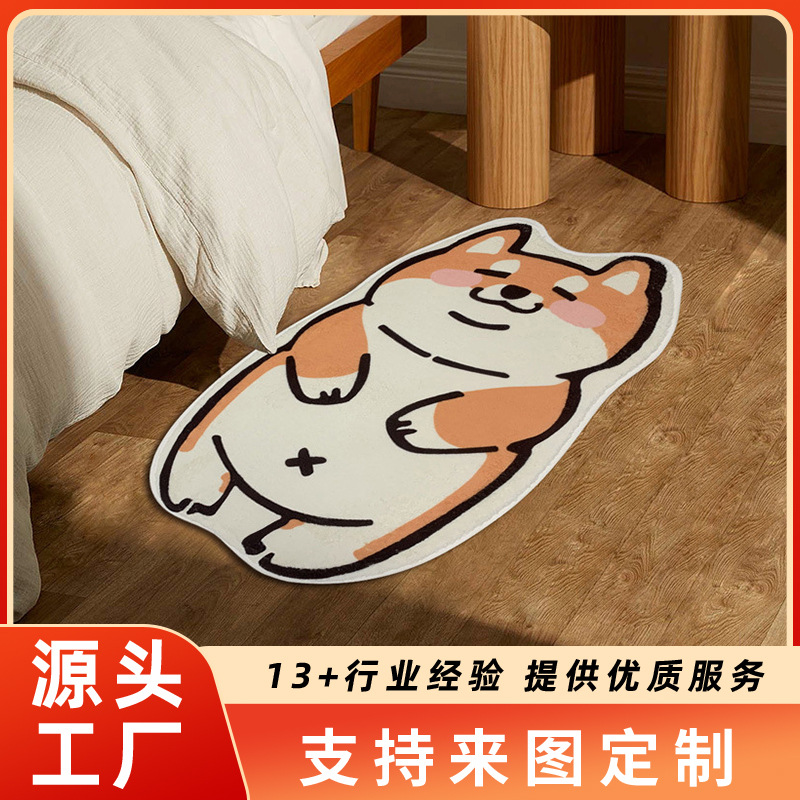 漫画コーギー模造カシミヤ滑り止めリビングルームベッドルームベッドサイドマットフットマットペット犬特殊形状カーペットフロアマット