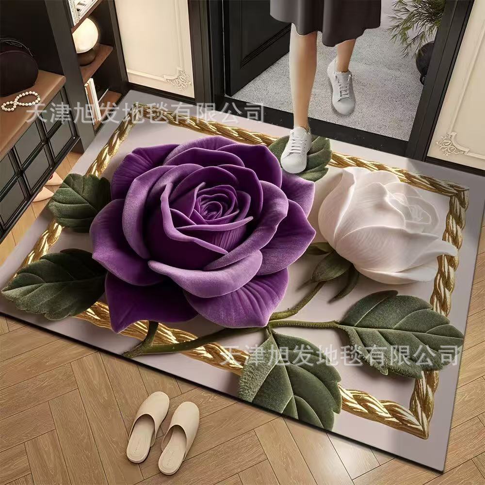 ライト高級ローズ吸水速乾フロアマット視覚的立体珪藻泥カーペット汚れ防止耐摩耗性フットマット滑り止めフロアマット