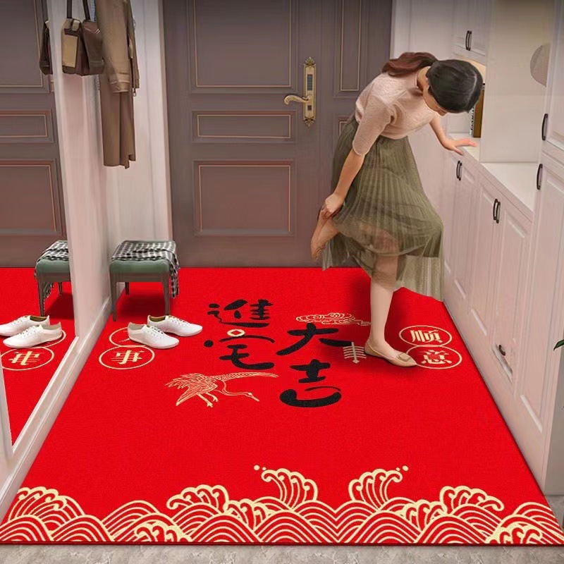 珪藻泥の赤いお祝いの地に家のドアを敷いて家庭の玄関の足を敷いて玄関の入り口に出て平安じゅうたんに入ります。
