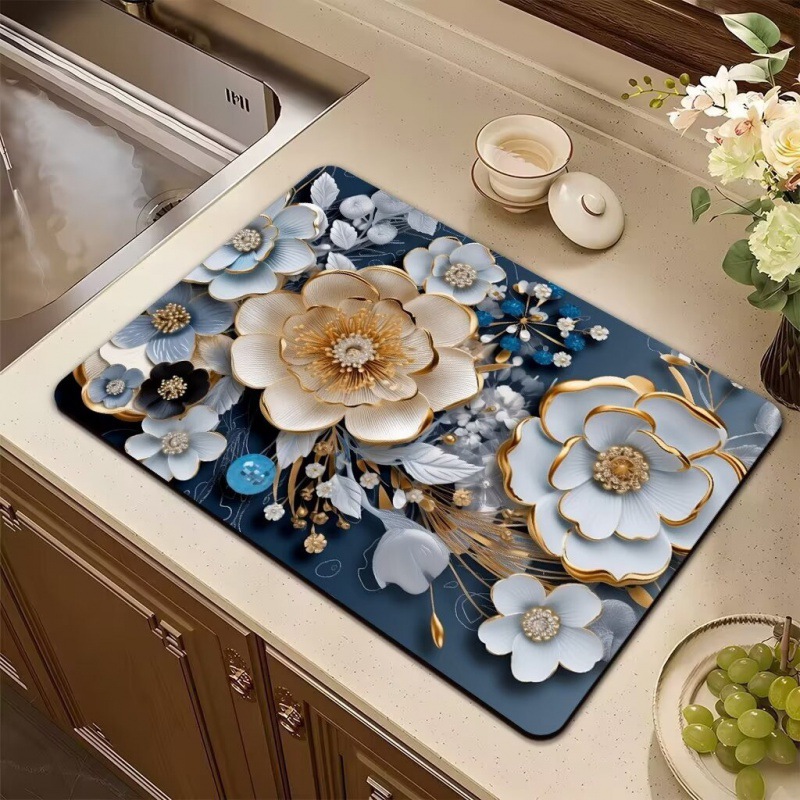アメリカのレトロな花の台所のテーブルの水切りマット吸水速乾マット乾燥滑り止め珪藻泥断熱テーブルマット