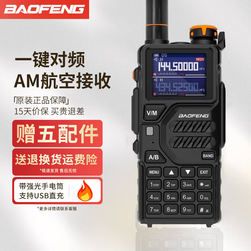 宝鋒k5plusトランシーバーワンキー対周波数アウトドアuvハンドデスクam航空全周波数帯宝峰10w自走旅行