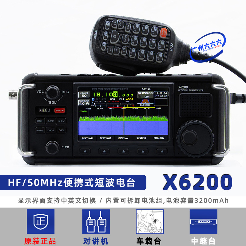 XIEGU X6200 SDR ポータブル短波ラジオ HF/50MHz フルモード 8W 内蔵アンテナ