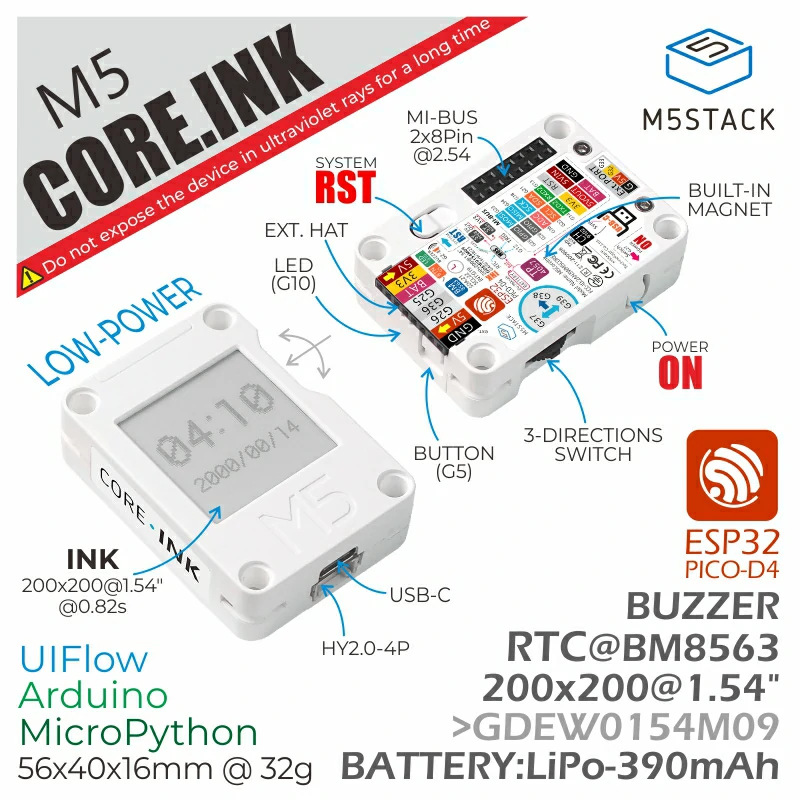 公式 M5Stack CoreInk 電子インク スクリーン開発ボード 1.54inch 低電力電子ペーパー ESP32