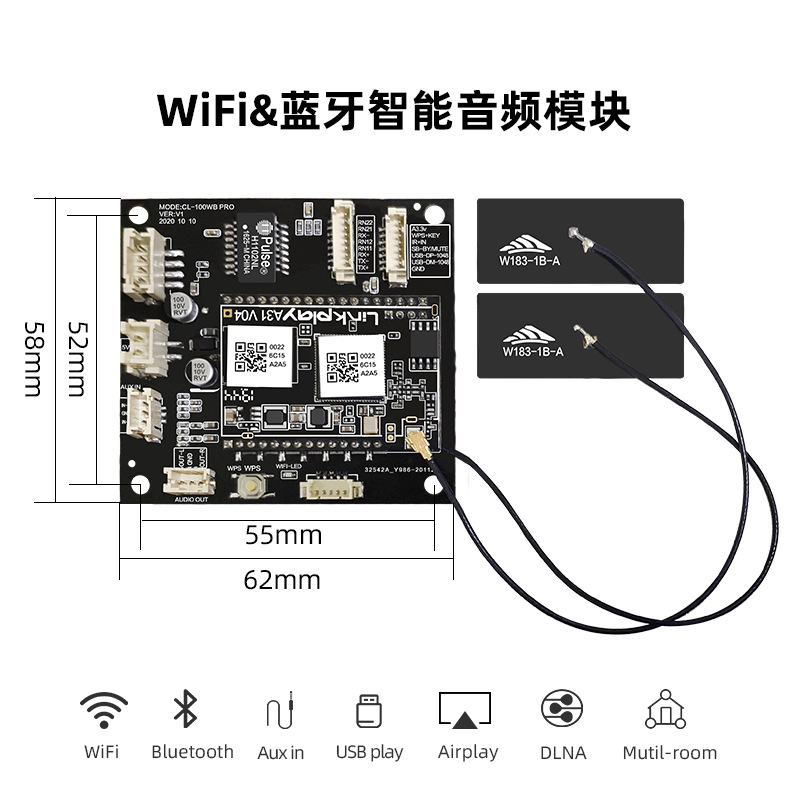 起爆WiFi bluetoothモジュールはSpotify DLNAをサポートし、USB入力に適したスマートスピーカーをサポートしています