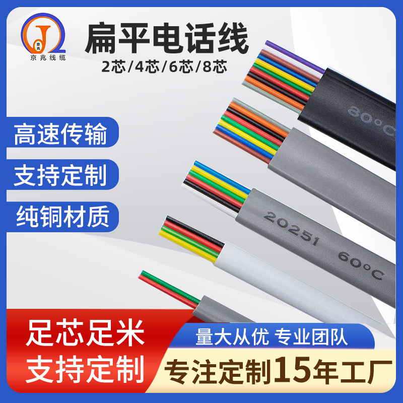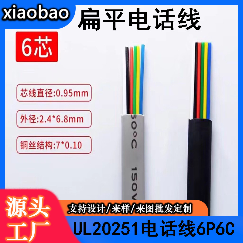 スポット供給黒6芯フラット電話線20251 6芯26awg 7*0.16無酸素銅電話線