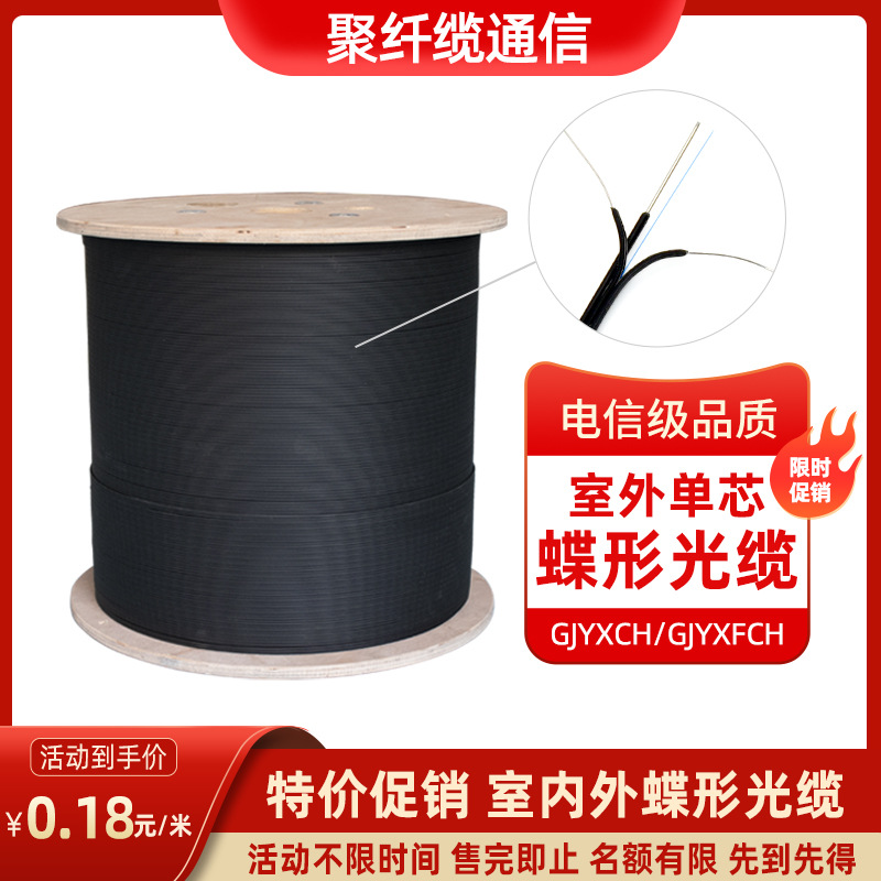 ポリファイバーケーブル屋外光ケーブル革線光ケーブル屋外単二芯蝶形光ファイバー線単モード皮繊維1芯2芯