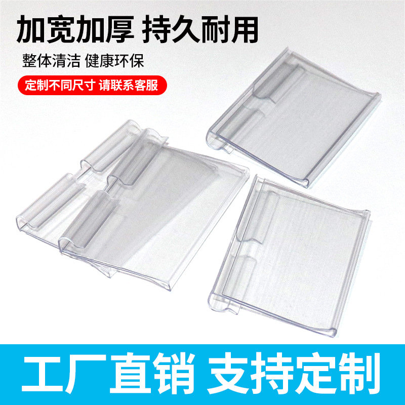 スーパーマーケットの冷凍庫の価格カードの条冷蔵庫の冷凍庫の飲み物の箱の透明なプラスチックの価格札のラベルの値札の札を掛けます。