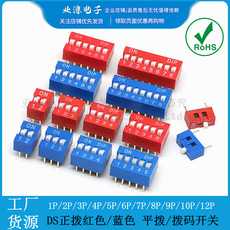 ダイヤルスイッチ赤/青のダイヤルスイッチ2.54mmピッチ1/2/3/4/5-12pコードスイッチ