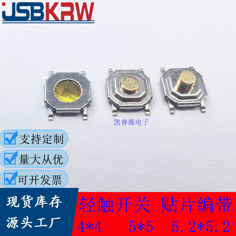 タッチスイッチ4*4*1.5/1.6/1.7/2.0/2.5/3.0銅頭四脚パッチ5.2*5.2*1.5mm