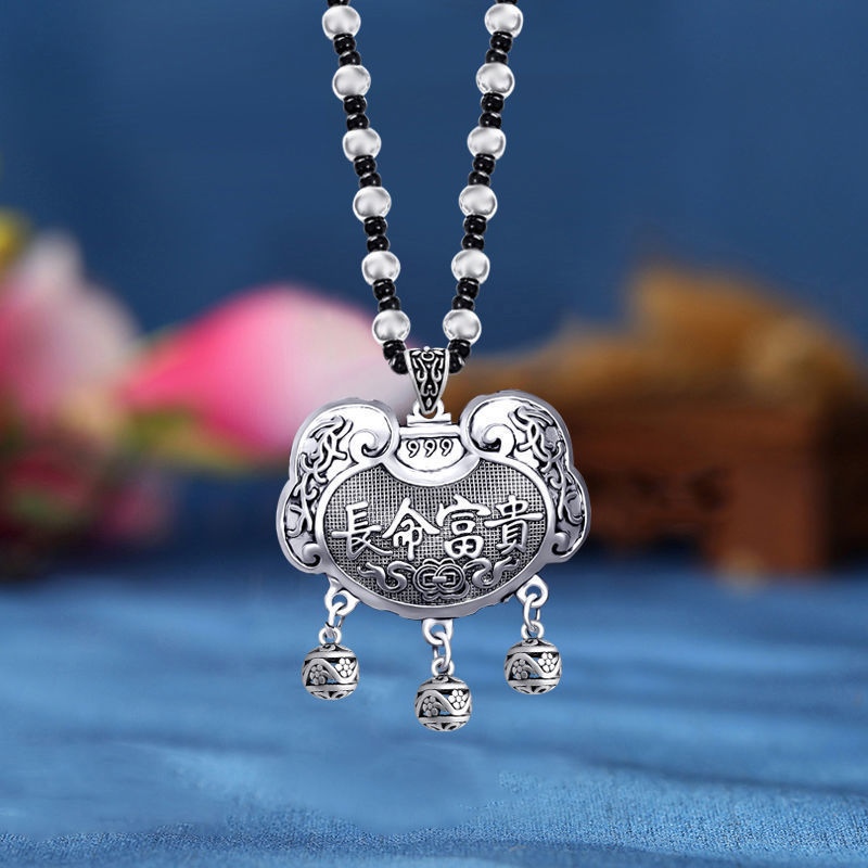 999純銀ペンダントネックレスブレスレットペンダント小銭袋元宝鈴DIY編み部品材料