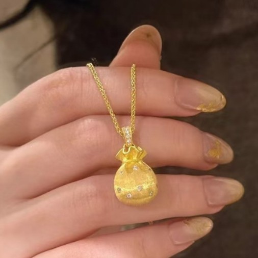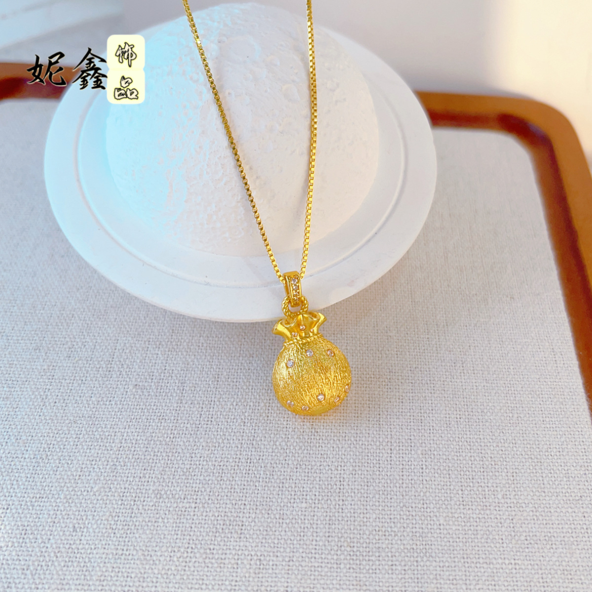 古法金箔点金細工福袋ペンダントネックレス、金店と同じスタイル、高色保持、お金袋DIYアクセサリーペンダント