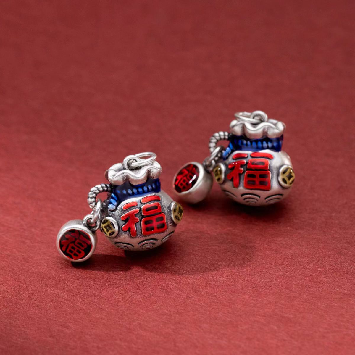 S925純銀国潮デザイン新年の財源がもうもうとしている財布のイヤリングの気質がイヤリングのアクセサリーになっている