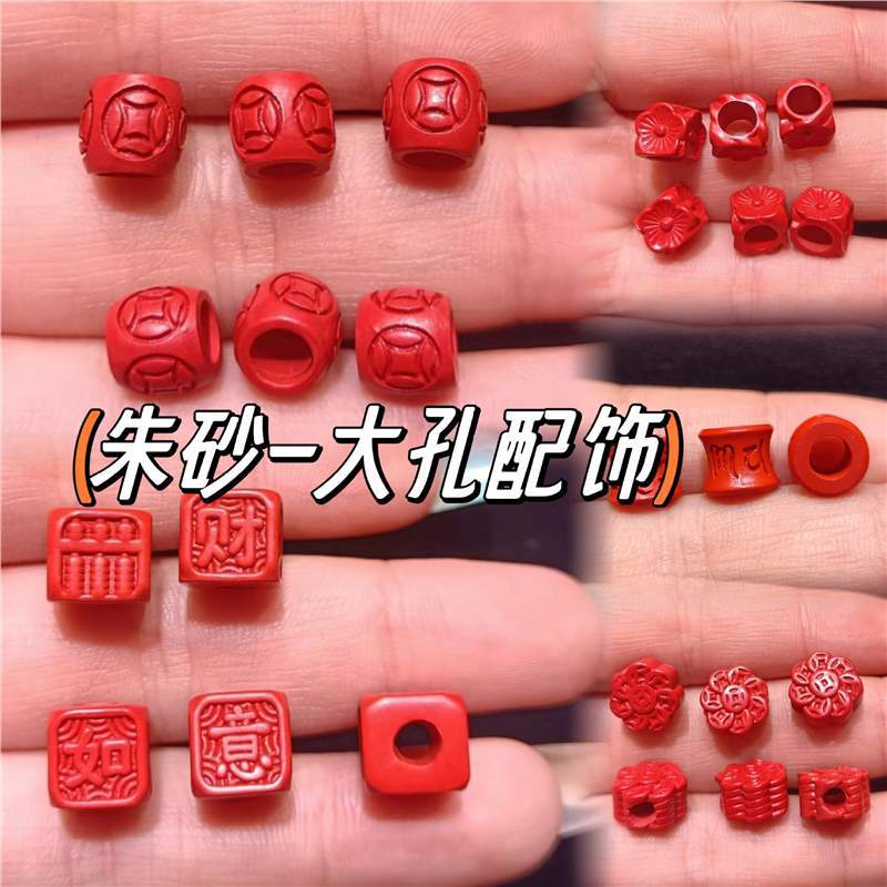 原鉱大孔朱砂散珠紅砂花珠単粒珠定位珠六字真言硬貨珠紅砂部品