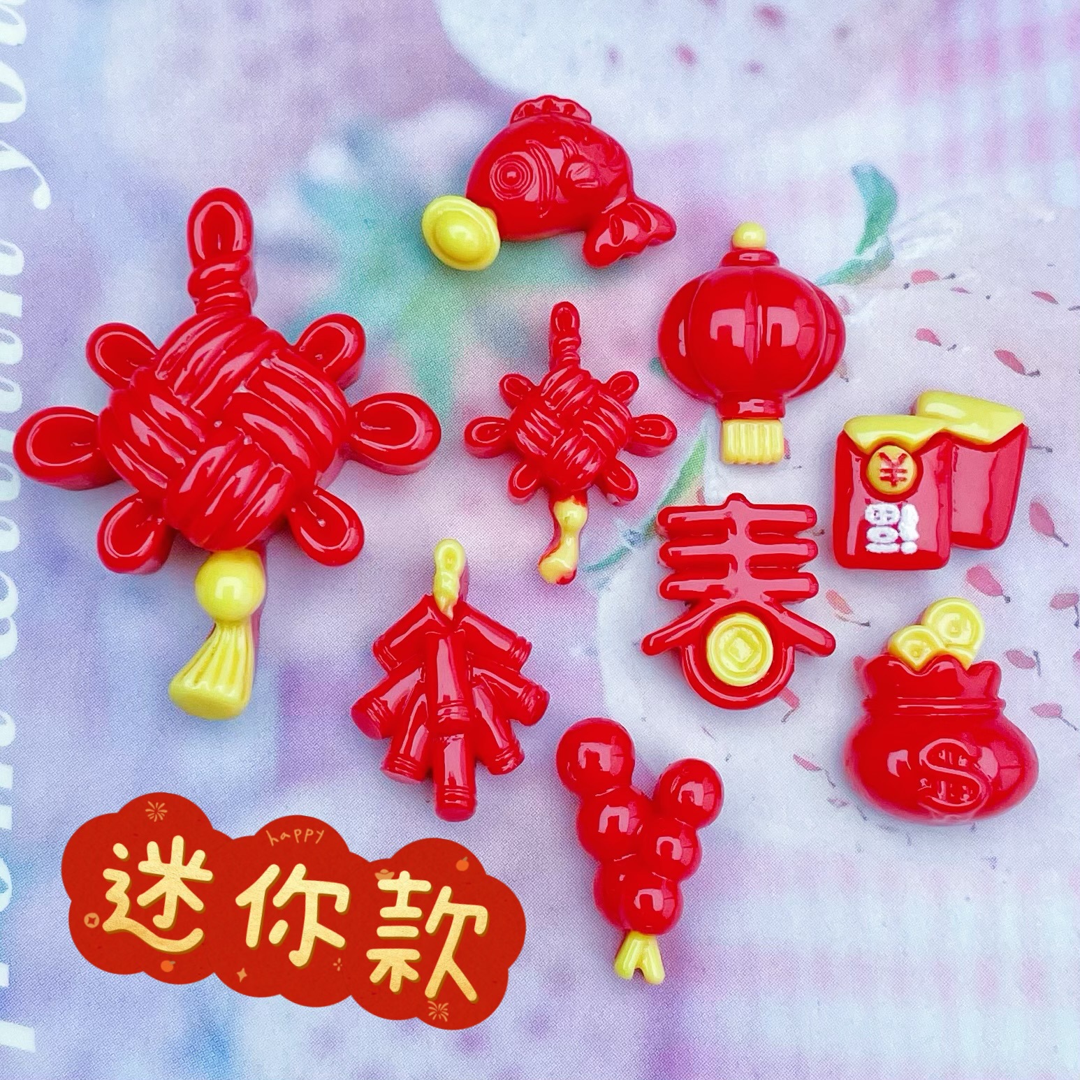 ミニトランペット赤い旧正月中国結び新年樹脂部品ピアスネイルケースクリームヘアクリップ