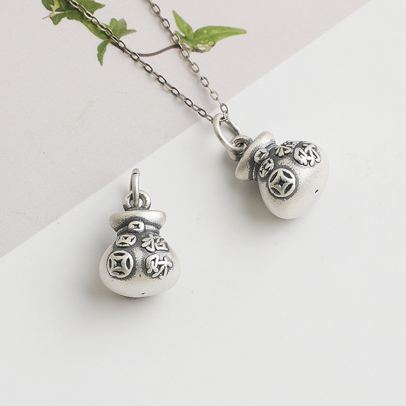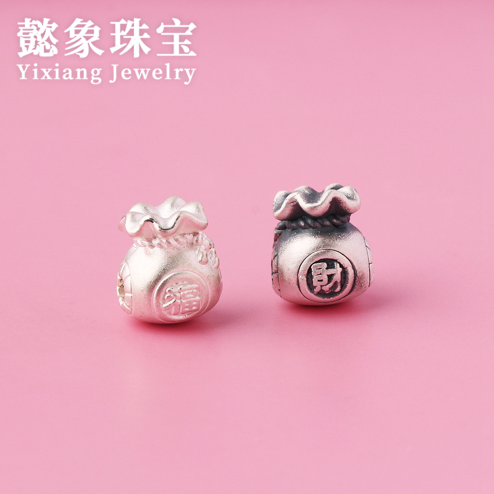 S999足銀3dハード銀招財銭袋ペンダントDIY数珠手串ネックレス金銭ペンダントアクセサリー