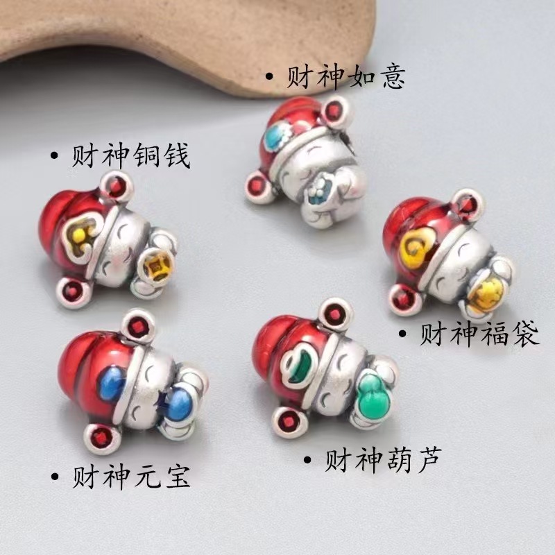 999純銀小財神ネックレス足銀レトロ3dハード銀五路財神ペンダントDIY手綱部品装飾材料