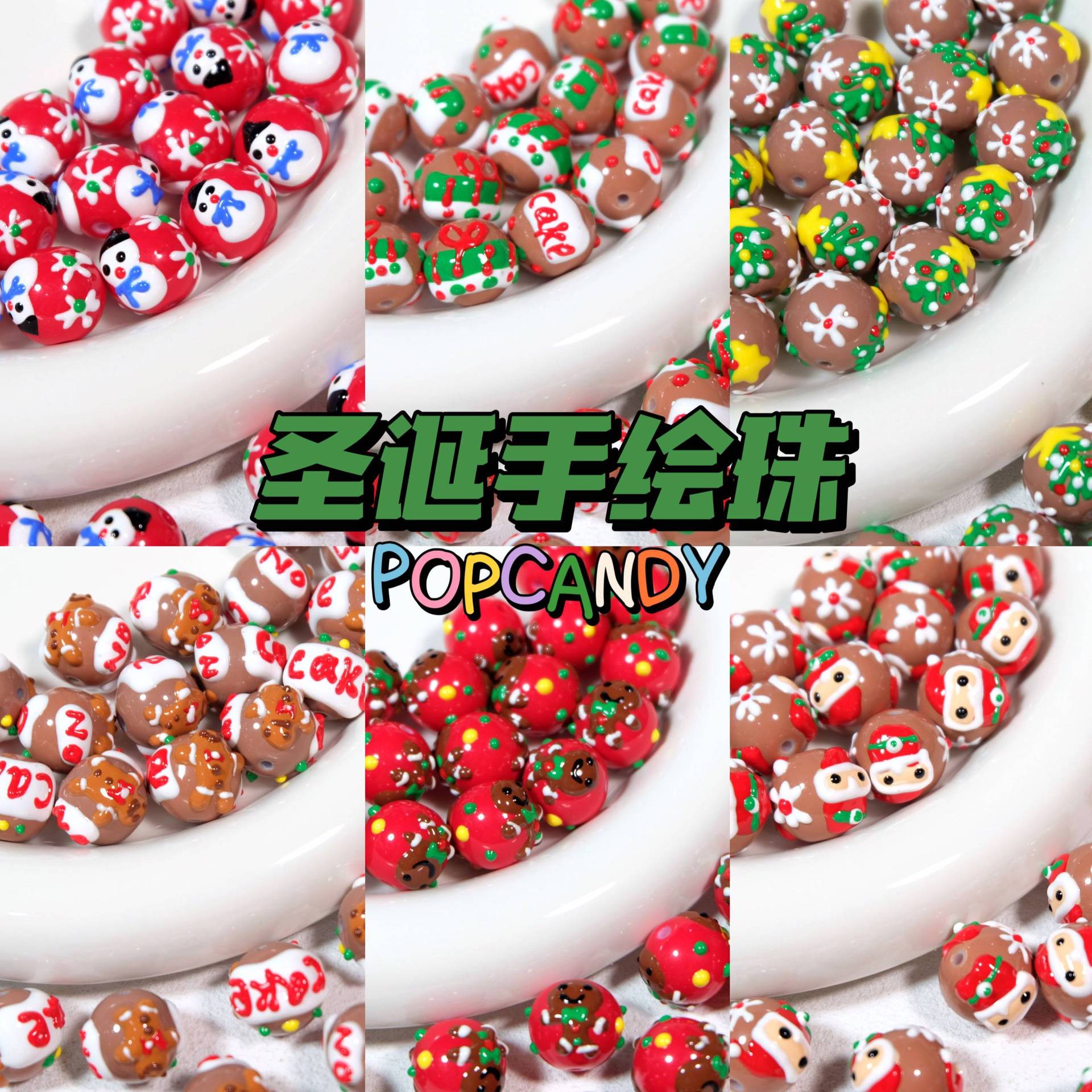 クリスマスシリーズ手描きビーズdiy手作りアクセサリー姜パイ人かわいい松葉杖糖雰囲気感好物散珠アクセサリー
