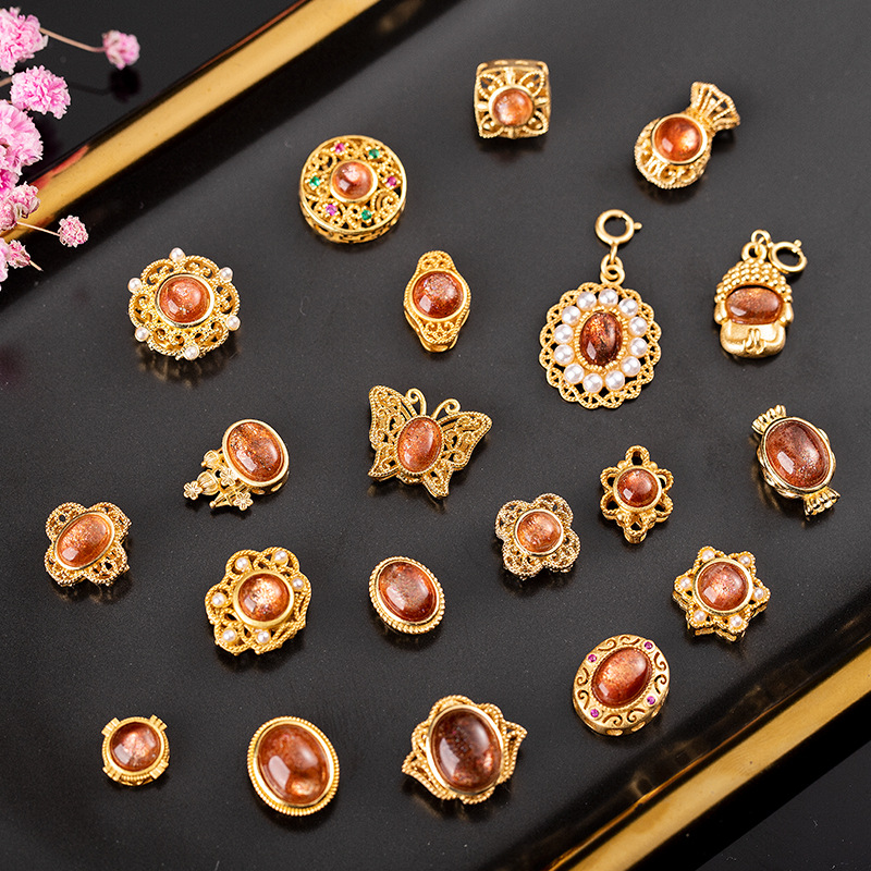 S925シルバー天然ゴールドサンストーンゴールドいちご晶猫眼日光石蝶クローバーなど多くのdiyアクセサリー