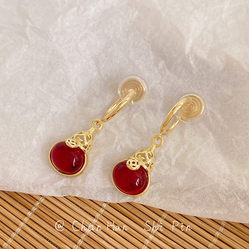 玄学旺財福禄瓢箪イヤリング蚊取り線香盤耳挟み小衆高級感軽豪華無耳洞レトロ耳飾り女