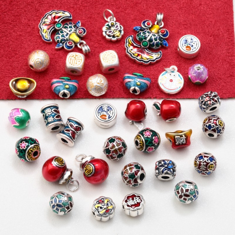 福の字の福袋のお金の袋のペンダントのネックレスのブレスレットのペンダントs999銀のアクセサリーのアクセサリーのdiyの部品