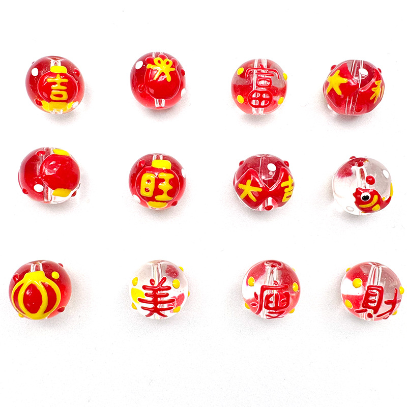 中国風新年金重工滴油瑠璃手絵珠DIYブレスレット携帯電話チェーン髪飾り部品散数珠子