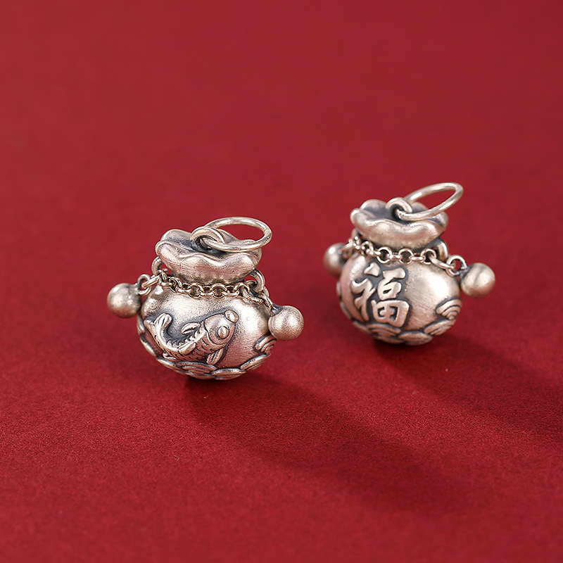 壱鹿銀s990足銀錦鯉福字銭袋創意ペンダント手作りdiyネックレス3d硬銀アクセサリー部品