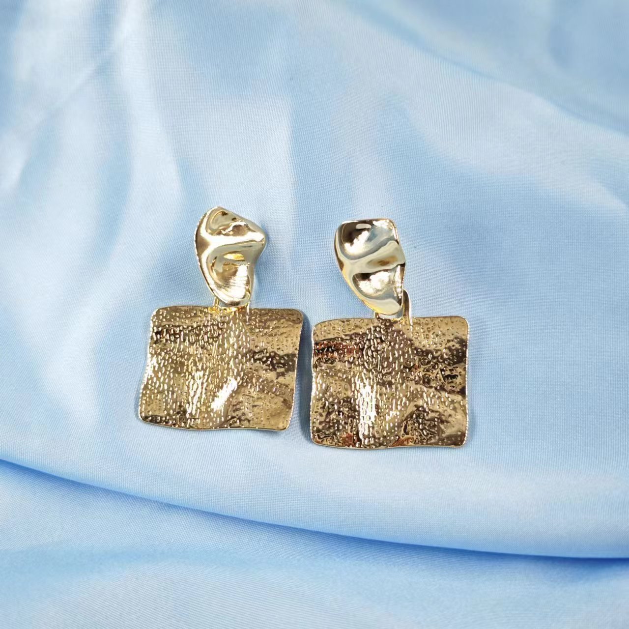 欧米のクロスボーダーの新型の四角形の凹凸のハンマーの紋様のファッション的な個性の復古の耳飾りの工場は直接に財布のイヤリングを卸売りします。