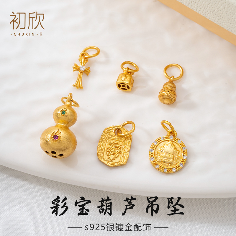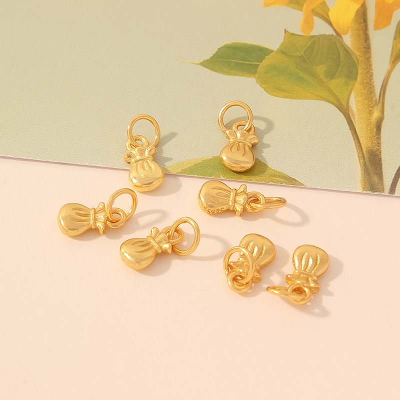 S925 シルバーゴールドメッキ Zaki イエロー富の神ひょうたんマネーバッグネックレスペンダントシングルペンダントブレスレットブレスレットペンダント DIY アクセサリー