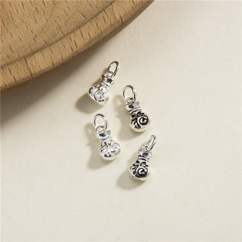 S925純銀部品レトロ中国風福字銭袋小ストラップDIY編み紐水晶真珠ブレスレットペンダント