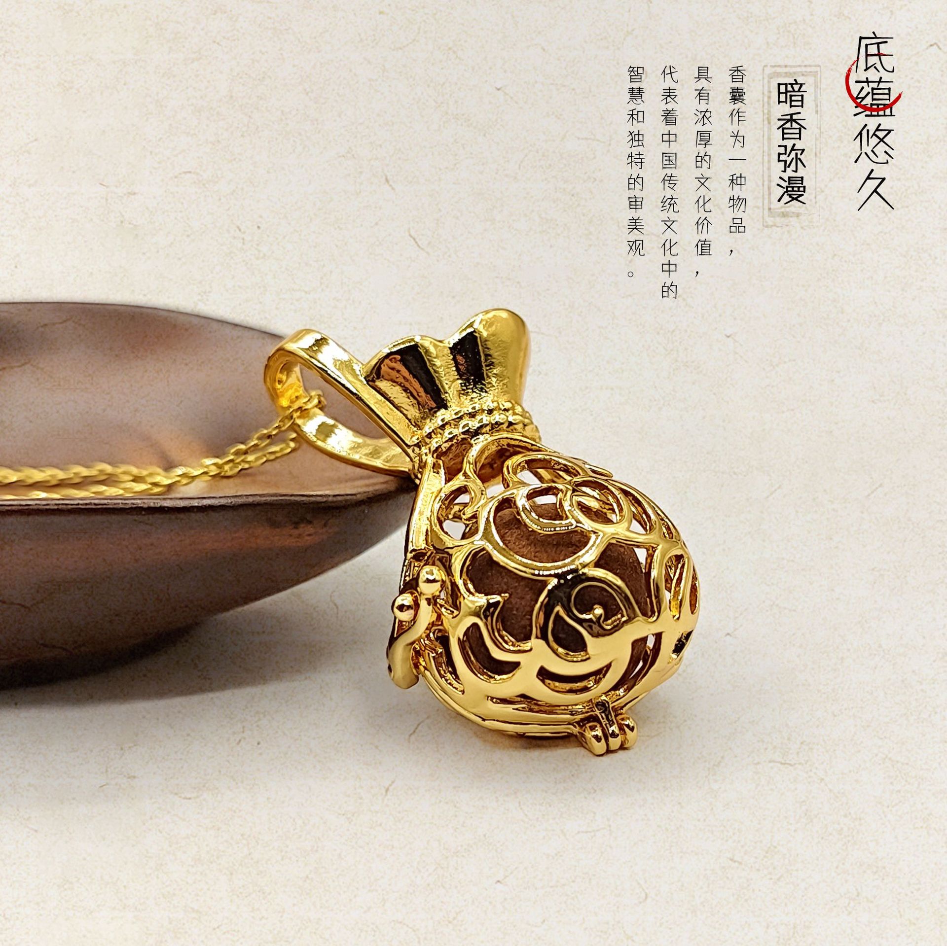 国風は古法金香丸香嚢球を開けて銭袋を透かしてペンダントします。