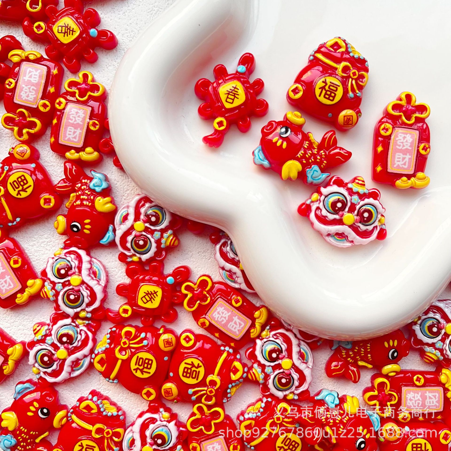 赤いお祝いの新年のタイプの目を覚ますライオンの樹脂の部品のdiyクリームの携帯のケースのヘアピンの帽子の手袋の装飾品