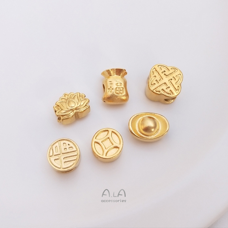 強保色ベトナム沙金元宝福字銭袋銅線蓮隔珠ペンダントdiyブレスレット輸送珠部品