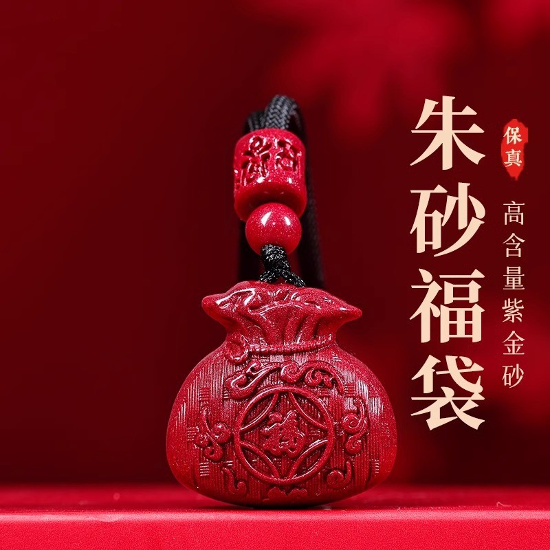 干支年本物辰砂マネーバッグペンダント安全袋福袋紫金砂手編みロープ男性と女性のジュエリーペンダントギフト