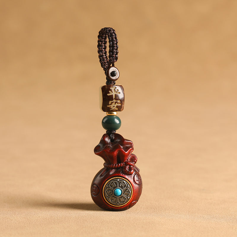 朱砂のお金の袋の本命年の携帯のチェーンの掛け金の男女のペンダントのキーホルダーは卸売りの震え音の同金を掛けます。
