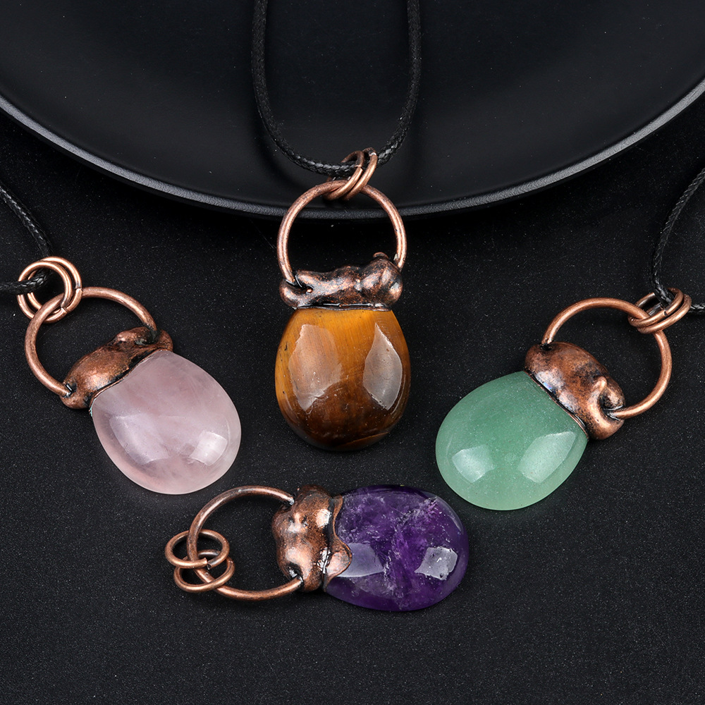 1777-紫水晶復古風バッグペンダント白水晶粉晶虎眼古銅欧米アクセサリー石ペンダント