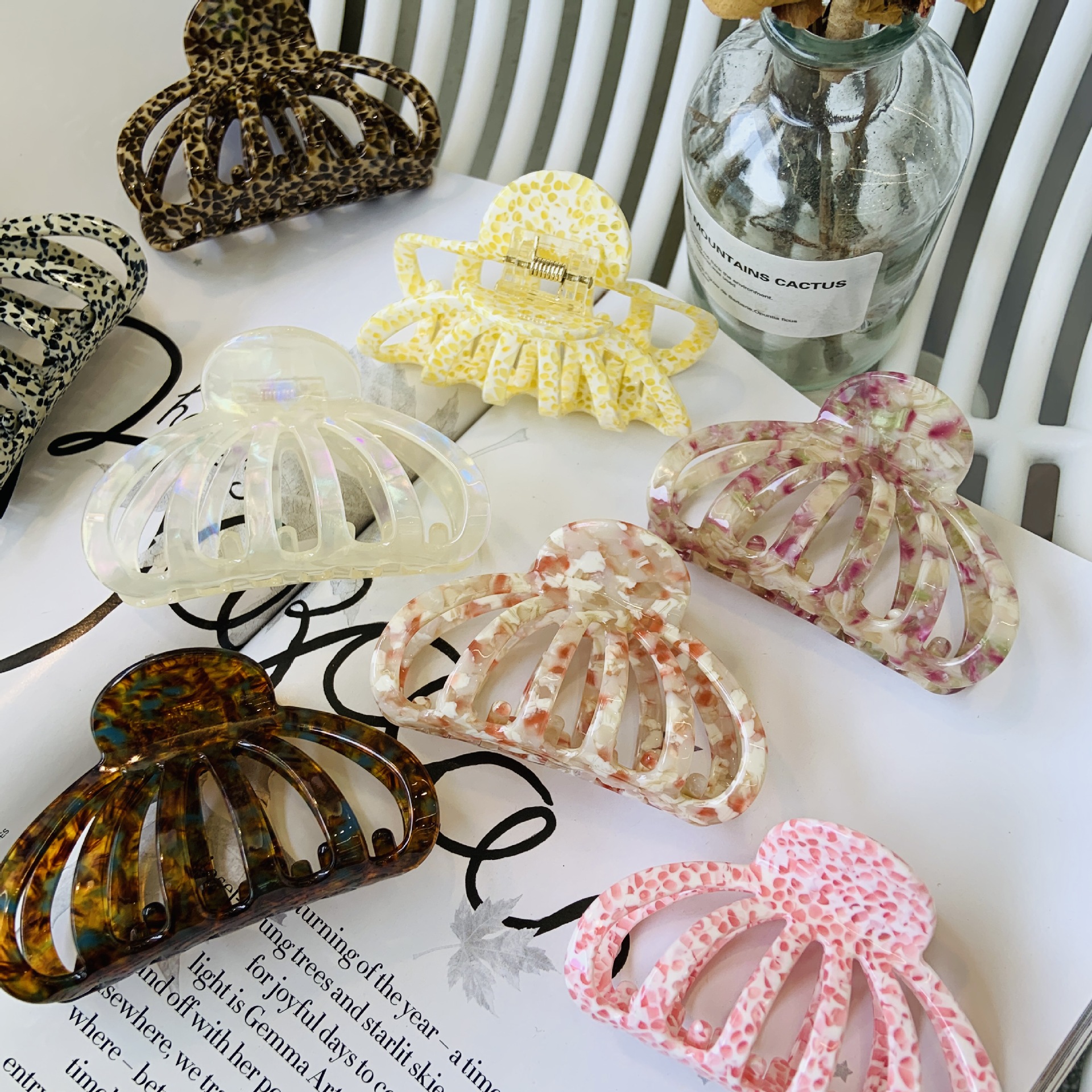 韓国版の新型酢酸クリップの透かし彫りの夏のヘアピンの高級感のカラーの甘い大きいサイズのヘアピンはサメの魚のクリップをつかみます。