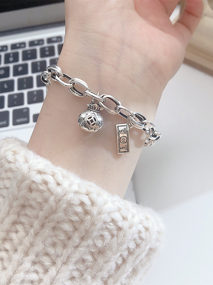日韓の気質s 925純銀のブレスレットの女性の福のお金の袋のファッションの個性の百合の小さい大衆の設計感のファッションの新型の学生