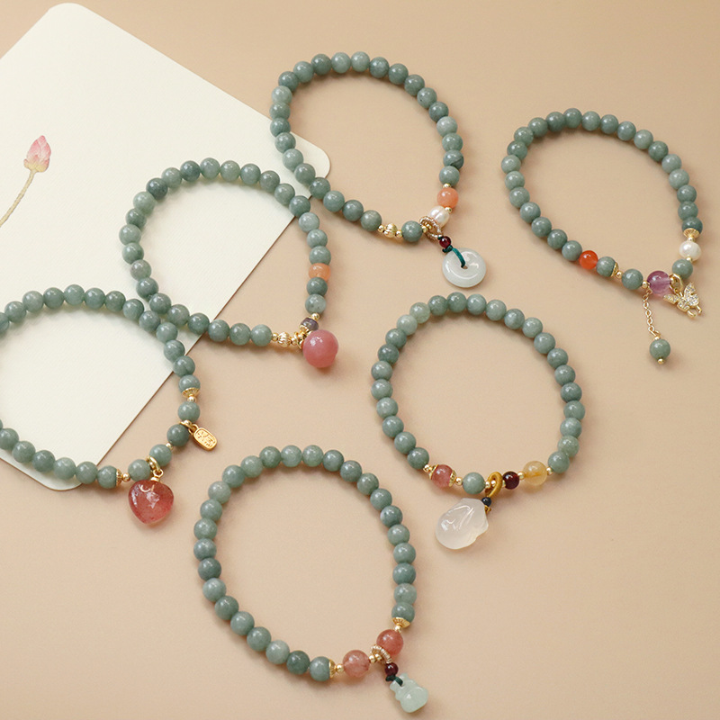 レトロ中国式民族風天然6mmミャンマー玉ブレスレット愛平安ボタン桃手串親友プレゼント