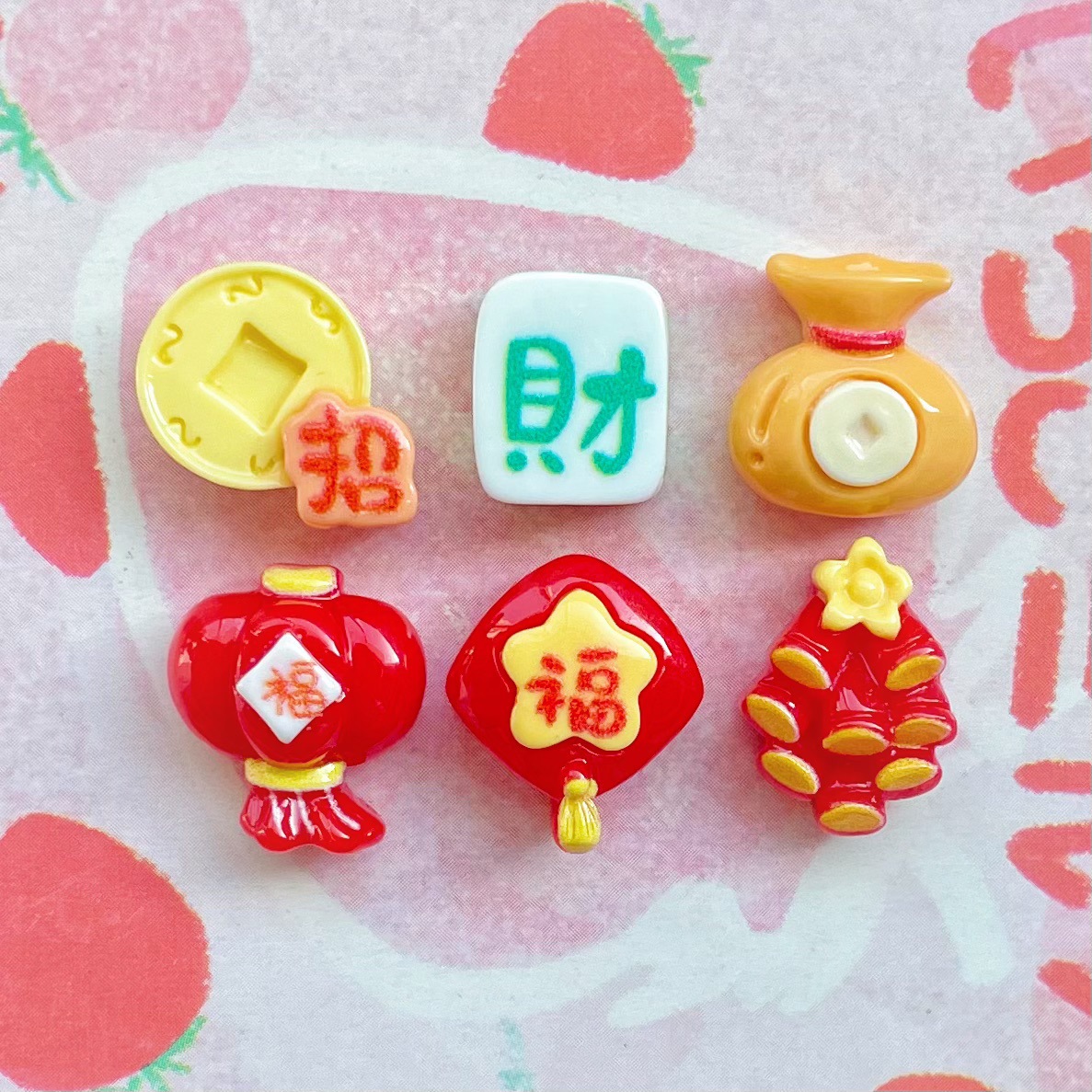 ミニ新年の字の樹脂の部品の春節の提灯の爆竹のお金の袋の装飾の材料のヘアピンのクリームのゴムは装飾品を配合します。