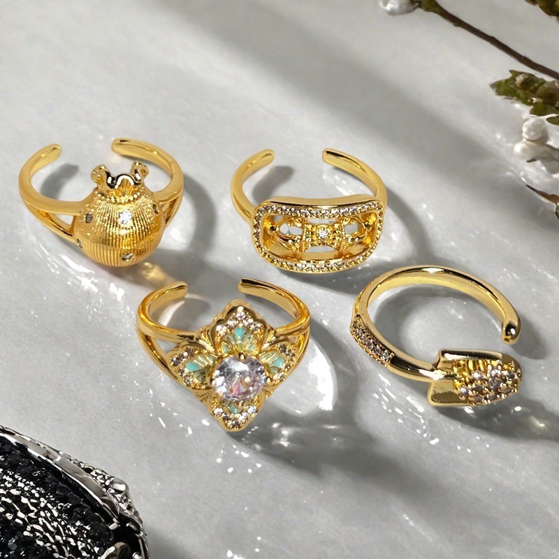 軽豪華フランス復古重工銭袋開口指輪中古小衆デザイン洗練された高級感四葉草指輪