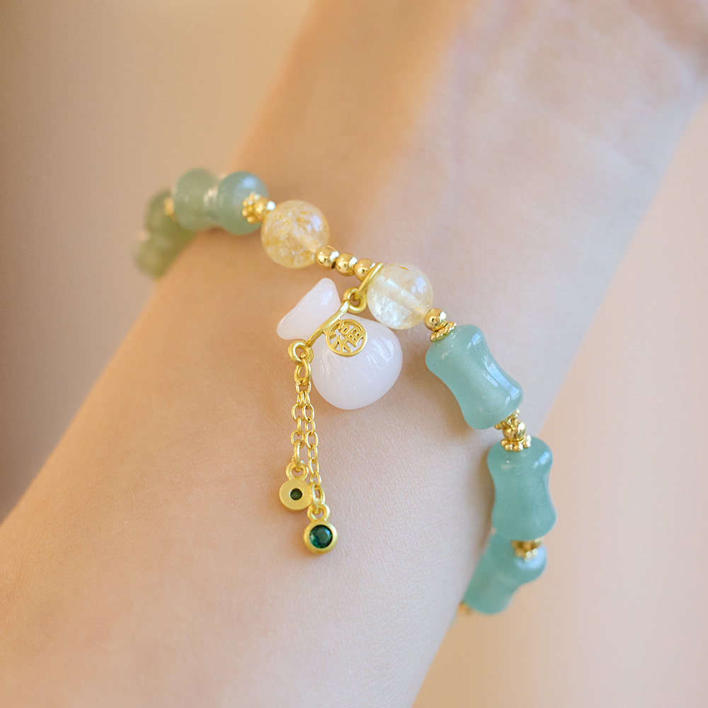 金糸玉天山翠玉ブレスレット竹節骨金女史緑天山翠竹節銭袋金手串