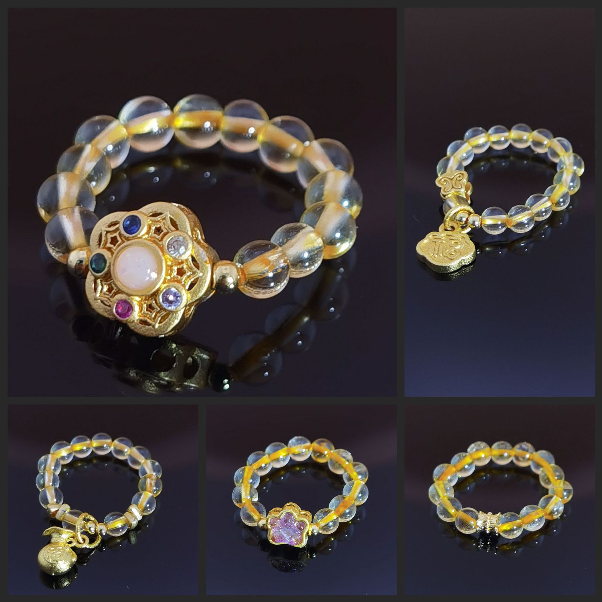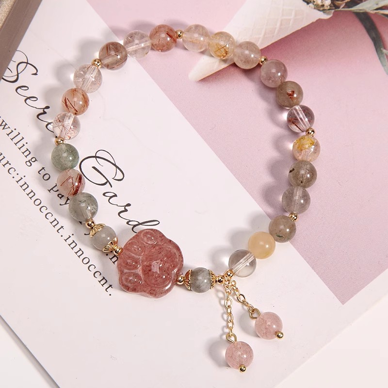Ins韓国版風彩発晶ブレスレットシングルリング女性ジルコン蝶いちご晶猫爪手串アクセサリー卸売り